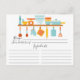 Tarjeta de receta de cocina con estanterías llenas de herramientas de cocina. La parte delantera de la carta tiene espacio para el título de la receta, de la cocina de y los ingredientes. La parte de atrás tiene una línea para las direcciones. Las invitaciones coincidentes están disponibles en nuestra tienda