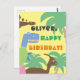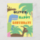 Personalice la tarjeta de cumpleaños de este niño con su nombre o texto. El colorido parque natural con tiranosaurio rex, stegosaurus, parasaurolophus con palmeras ilustracion de cumpleaños es un gran regalo para los niños que aman los dinosaurios y el parque musical. Tarjeta de cumpleaños de dinosaurio personalizado para el niño pequeño. Tarjeta de cumpleaños de dinosaurio personalizado para niños en edad preescolar. Tarjeta de cumpleaños de dinosaurio personalizado para niños.