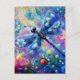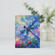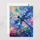 Postal Resumen caprichoso Dragonfly Floral Verde azulado