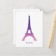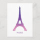 Este diseño presenta una Torre Eiffel abstracta de color púrpura y rosa.