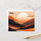 Un paisaje abstracto con una gran puesta de sol blanca sobre las montañas y un río, hecho en rojo, ocre, marrón y naranja, para crear una hermosa postal para saludar, y hacer saber a alguien que estás pensando en ellos.