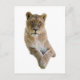 Retrato de leona (Panthera leo) aislado en un suelo de roble blanco con su león con las piernas cruzadas