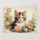 Postal Retrato Antiguo Gatito Calico Lindo Flores Dulce