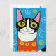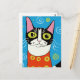 Un simple y caprichoso ilustracion de un lindo retrato de gato blanco y negro con un saltador con manchas rojas.