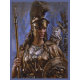 Retrato colorido de la "Vigilia Eterna de Atenas". Representada como una vigilante protectora, la intensa expresión de Athena refleja su dedicación. Su armadura simboliza la fuerza, mientras que el búho de su hombro encarna su sabiduría. La rama de olivo sirve como recordatorio de su regalo a Atenas, simbolizando la paz. La araña agrega una capa de arte, conectándola con la habilidad creativa. Esta imagen refleja el papel atemporal de Atenea como guardián y símbolo del intelecto en la mitología griega.