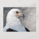 Postal con un primer plano del águila calva de américa real de perfil. Pueden ver los detalles de sus plumas marrones y blancos oscuros, su pico enganchado amarillo y sus ojos agudos penetrantes. Como emblema de Estados Unidos, esta es una gran carta para los patriotas, así como para los observadores de aves y los amantes de la naturaleza. Foto tomada en Los Ángeles, California.