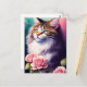 La postal de bonito muestra el retrato de un gato de Maine Coon con rosas rosas rosas. Pintura digital creada con software de IA.