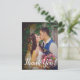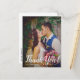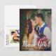 Vibrante y alegre, esta tarjeta postal de agradecimiento con foto de formato vertical y sangrado total presenta una letra "¡Gracias!" en mayúsculas y minúsculas con un signo de exclamación, lo que aporta un sentimiento enérgico y de celebración a su correspondencia posterior a la boda. Los nombres de la pareja personalizables, el acento del corazón y la fecha de la boda se muestran en la parte inferior en un tipo limpio y blanco. Una opción animada y llamativa para las parejas que quieren que su gratitud se sienta tan festiva como el día en sí.