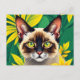 Postal Retrato de gato balinés vibrante rodeado de tropic