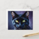 Postal Retrato de gato negro con ojos verdes