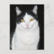 Postal Retrato de gato negro y blanco