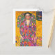 Postal con el retrato pintado por Gustav Klimt de Eugenia Primavesi (1913-14). Una mujer elegante con un colorido vestido de flores posa delante de un fondo amarillo. Un excelente regalo para los amantes del arte Art Nouveau y austriaco.