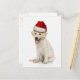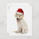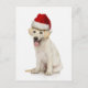 Retrato de un recuperador de Labrador blanco que usa un gorra de santa claus