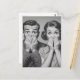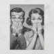 Impresionante retrato de estilo vintage en blanco y negro de una pareja sorprendida con expresiones de ojos anchos y manos que cubren la boca, capturando un ambiente retro clásico perfecto para posters, impresiones y amantes de la nostalgia.