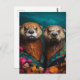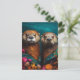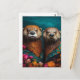 Postal Retrato floral Cute Otters