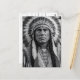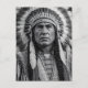 Retrato en blanco y negro de un hombre nativo americano de A.I. con una toga tradicional con plumas.