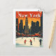Postal Retro de patinaje sobre hielo Navidades de Nueva Y