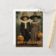 Postal Retro Halloween niños escalofriantes con calabazas