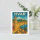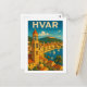 Echa un vistazo a esta impresionante ilustración retro colorida en una postal de viaje del destino turístico croata de Hvar Croacia. Este producto es un recuerdo increíble para cada visitante y turista de la ciudad croata en la costa adriática. Personaliza y compra ahora.
