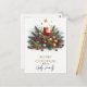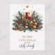 Personaliza esta tarjeta postal de Navidad con tu propio texto. La obra de arte presenta velas retro de vacaciones, ramas de árbol de Navidad, piñas de temporada, palitos de canela y estrellas doradas / acentos de brillo