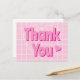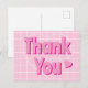 Di gracias con esta adorable tarjeta postal de estilo retro rosa. Un fondo rosa de estilo retro genial con un patrón de cuadrícula blanca encima. En el centro están las palabras Gracias en letras rosadas con una sombra de rosa intenso para que se destaque. Un corazón de amor rosa lindo está a la derecha de la palabra tú.