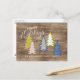 Única, elegante, de moda, bonito y decorativa tarjeta navideña con divertidos árboles de Navidad abstractos en una finca de madera de estilo shiplap estilo madera patrón de textura de grano. Este diseño hipster caprichoso está diseñado para los amantes de la temporada navideña de diciembre o de los ilustraciones de arte gráfico. Con espacio para personalizar o personalización con sus nombres familiares o individuales y fecha de su elección, y un poema de bienvenida de temporada de personalizable en el reverso de la tarjeta.