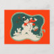 Postal con un ilustracion vintage de un muñeco de nieve Navidades de los años 40. Personalizar con tu propio color de fondo y texto. ¡Retro genial!