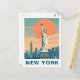 Capture the essence of America's most iconic symbol with this vintage postcard of the Statue of Liberty in New York City. Overlooking the city's skyline from Liberty Island, Lady Liberty has welcomed millions of travelers to the land of opportunity. With its retro design and classic colors, this postcard is a perfect tribute to the enduring spirit of New York and the USA.