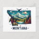 Echa un vistazo a esta hermosa postal retro vintage de Montana con el mapa del estado americano y su impresionante paisaje. Compra ahora como recuerdo de viaje y idea de regalo de turismo.