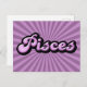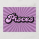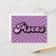 Estas camisetas y otros artículos se imprimen con el nombre del signo astrológico Pisces en letras retro en colores para coincidir con la piedra de nacimiento del cartel, amethyst.