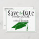 Deseche esta invitación de postal de la plantilla "Save The Date" verde y negro con código QR para su reunión de clase. Personalice el texto en los campos de plantilla para la parte delantera y posterior, agregue el vínculo adecuado para su código QR o edite utilizando la herramienta de diseño para seleccionar un estilo de fuente, tamaño y color que prefiera.