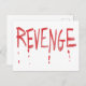 Diseño vengativo dibujado a mano con letras rojas con goteo. Un diseño divertido para un asunto serio.