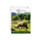Cartel de saludos desde África que presenta rinocerontes maternos y rinocerontes salvajes en Zimbabue.