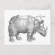 El rinoceronte de Albrecht Dürer es un corte de madera que se basó en una descripción escrita y un breve boceto de un artista desconocido de un rinoceronte indio que había llegado a Lisboa a principios de ese año. Dürer nunca vio el rinoceronte real, que fue el primer ejemplo viviente visto en Europa desde la época romana. A finales de 1515, el Rey de Portugal, Manuel I, envió al animal como regalo para el Papa León X, pero murió en un naufragio frente a las costas de Italia a principios de 1516. No se volvió a ver un rinoceronte vivo en Europa hasta que un segundo espécimen llegó de la India al tribunal de Felipe II en España alrededor de 1579.[2][3] El corte de madera de Dürer no es una representación exacta de un rinoceronte. Muestra a un animal con platos duros que cubren su cuerpo como sábanas de blindaje, con un gorget en la garganta, un escudo de aspecto sólido y remaches a lo largo de las costuras; y un pequeño cuerno retorcido en su espalda, piernas escalofriantes y cuartos traseros como sierra.