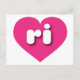 Esta postal cuenta con un vibrante corazón rosado caliente que contiene las letras negrita, redondeadas, blancas bajas fundas ri, una versión juguetona de la abreviatura de Rhode Island, el estado del océano.