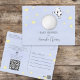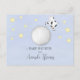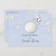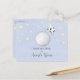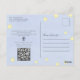 Este diseño presenta un guión bonito y caprichoso de género neutro, URL del registro de regalos de código QR, con vaca saltado sobre la luna, un guión elegante de caligrafía, una moderna y elegante invitación a la ducha de bebé, una luna de estrellas azules y amarillas, un clásico ritmo de guardería tradicional, una plantilla de postales fácil de usar, una postal de invitación a la ducha de bebé, con dirección web de tienda online