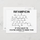No hay necesidad de trabajar en el campo médico ni de hacer pruebas positivas para la TB para disfrutar de cualquiera de estos irónicos regalos de humor químico que incluyen la molécula química rifampicina, un antibiótico bactericida del grupo rifamicina. Viene con el título "Rifampicina" junto con la leyenda del truismo químico "Si tienes tuberculosis vas a necesitar esto". También conocido como rifampina. ¡Que otros hagan hoy una doble toma sobre el uso de rifampicina con estos regalos de actitud científica!