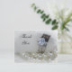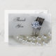 Envía un cálido mensaje de agradecimiento y gratitud con los elegantes Anillos de Diamante y Perlas Blancas Gracias Nota Postal. Esta elegante tarjeta de personalizado de agradecimiento incluye una fotografía de primer plano de un anillo de compromiso de diamantes y una banda de bodas con un collar de perlas blancas y fondo gris claro.