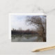 Fotografía de invierno al borde del río, una escena atemporal con árboles sin hojas y agua helada.