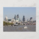 El río Támesis fluye por el corazón de Londres, y en una excursión en barco los turistas pueden ver muchos de los lugares de interés más famosos de la ciudad. Desde este punto de vista, desde el puente Charing Cross que mira al este, se puede ver la Catedral de San Pablo y más allá está el ecléctico horizonte del centro de negocios de Londres. Es un día claro y soleado con un cielo azul y la escena se completa con un crucero que se dirige al río.
