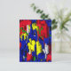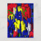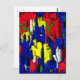 Postkarte, abstrakt, mit viel Blau das Risse enthält damit andere kraftvolle Farbdimensionen durchscheinen können.