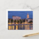 Vista nocturna sobre el paseo marítimo de Riva, casas y Catedral de Saint Domnius, Dujam, Duje, campanario en el casco antiguo, Split, Croacia, HDR.