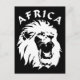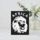 Un león ruidoso se enfrenta a un simple ilustracion con la palabra África. Diseño gráfico y de texto para amantes de los leones y personas que aman África.