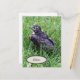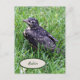 Fotografía de un ladrón de bebé sentado sobre un palo en el pasto pocos minutos después de salir del nido. Este pájaro fue el primero de los hermanos en salir del nido. Puede personalizar la postal cambiando la palabra Robin por otro nombre.