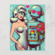 La IA generó arte retro pop de una mujer ajena de ojos y un robot enamorado