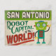 Una divertida postal de viaje vintage de San Antonio Texas con un simpático robot con divertido texto de estilo retro que dice: "¡San Antonio, capital robótica del mundo!"