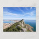 La opinión de la roca de Gibraltar desde arriba de, sobre dejó la ciudad y la bahía, ciudad de Gibraltar de Linea del La en España en el extremo lejano, mar Mediterráneo a la derecha.