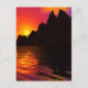 Este espectacular y espectacular atardecer marino es potente y evocador, con rocas tapizadas en mosaico y una puesta de sol multicolor reflejada en el océano rizado.