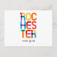 El estilo retro clásico de Rochester New York de los años 70 y 80. Colores primarios luminosos en el estilo artístico abstracto del siglo XX con elementos geométricos simples. Arte pop vintage. Simple negrita, usa tu ciudad natal en voz alta.