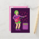 Este bonito y divertido ilustracion de chicas de rock cuenta con un rockero femenino retro brillante y colorido con el pelo verde, una guitarra eléctrica rosa caliente, un violeta y una falda de impresión de leopardo verde. Este adorable arte musical vintage de los años 80 es el regalo perfecto para quien ame el arte vectorial original con un tema musical.